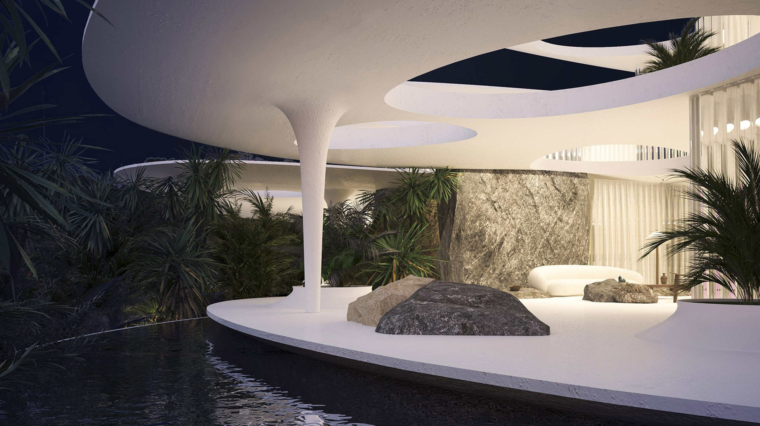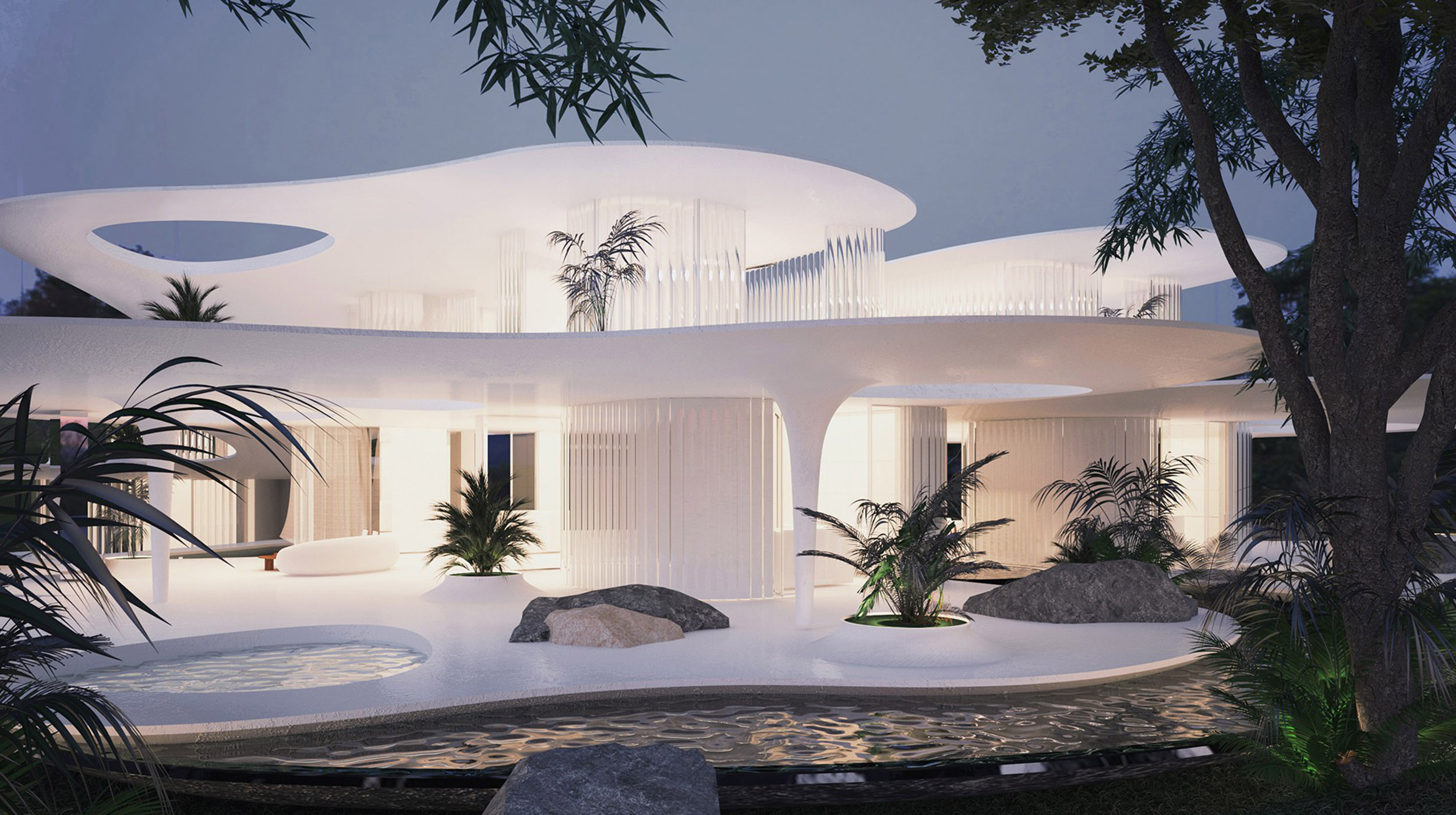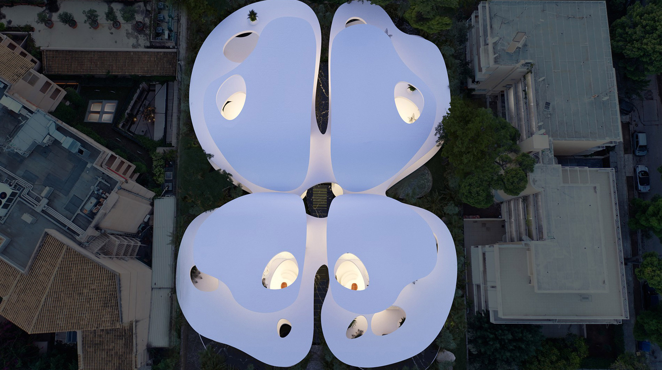 The Chrysalis Residences stands as one of the most distinctive examples of contemporary organic architecture on the Athenian Riviera, drawing inspiration from the transformative nature of the butterfly. With its curved lines, fluid forms and a composition that opens towards the natural landscape, the project creates a sense of harmony between space, light and nature. The shading created by the building’s wing‑like morphology, along with water features that mirror its sculptural curves, enhances the serene and private atmosphere that defines the entire development.